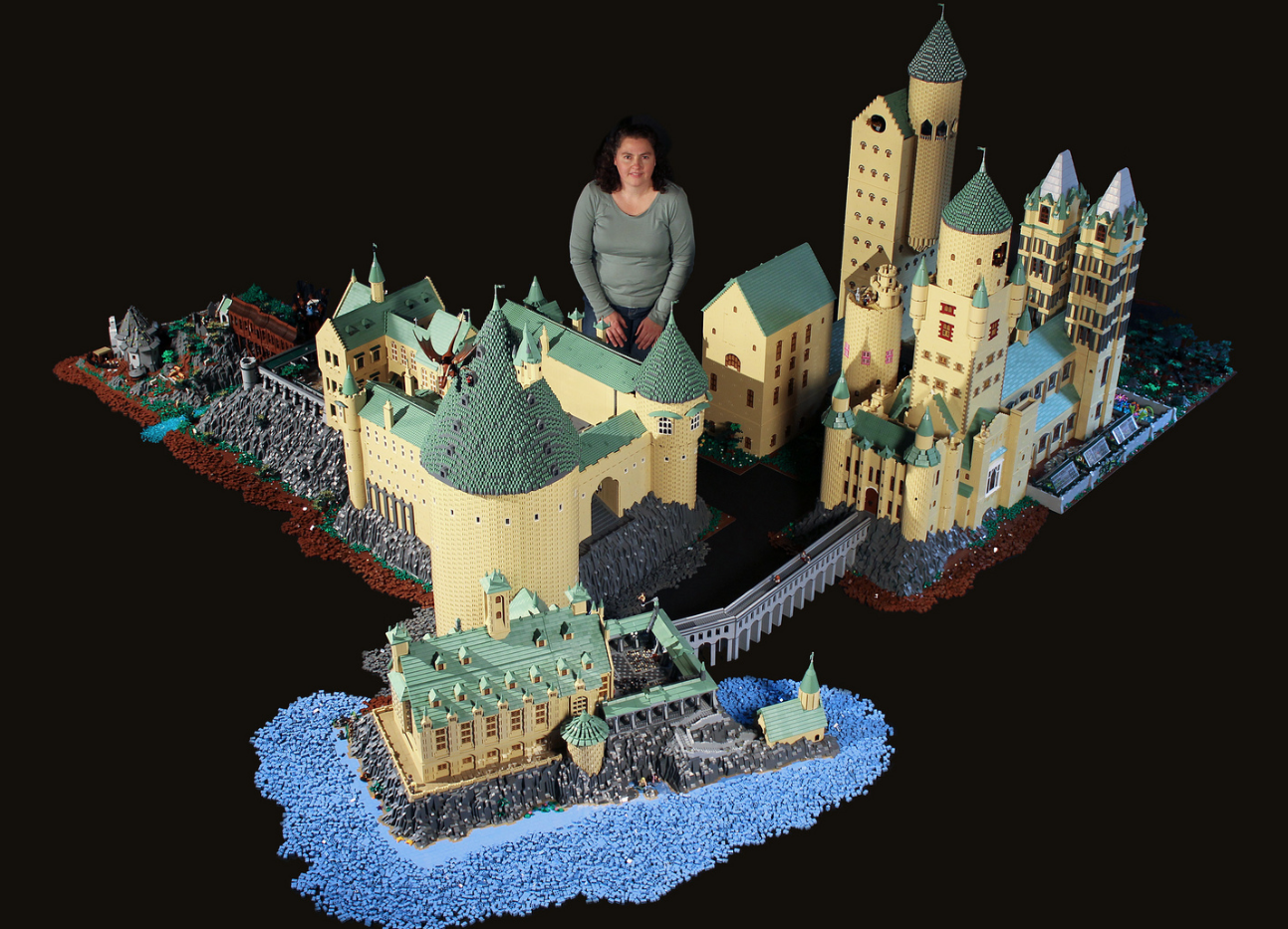 Talk about overachieving. This absurdly huge, incredibly-detailed replica of Hogwarts is entirely made of LEGO, and it’s pretty amazing. Artist/creator Alice Finch spent countless dollars and a full year building the castle, which is composed of over 400,000 bricks. You can read an interview with her here, and check out her Flickr page for lots more detailed photos. Via Laughing Squid: